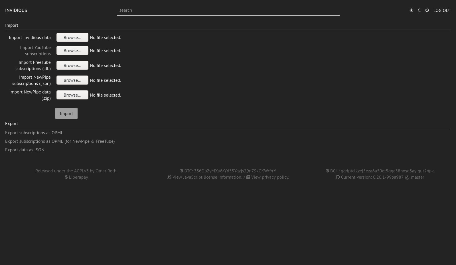 • Import subscriptions from YouTube, NewPipe and FreeTube